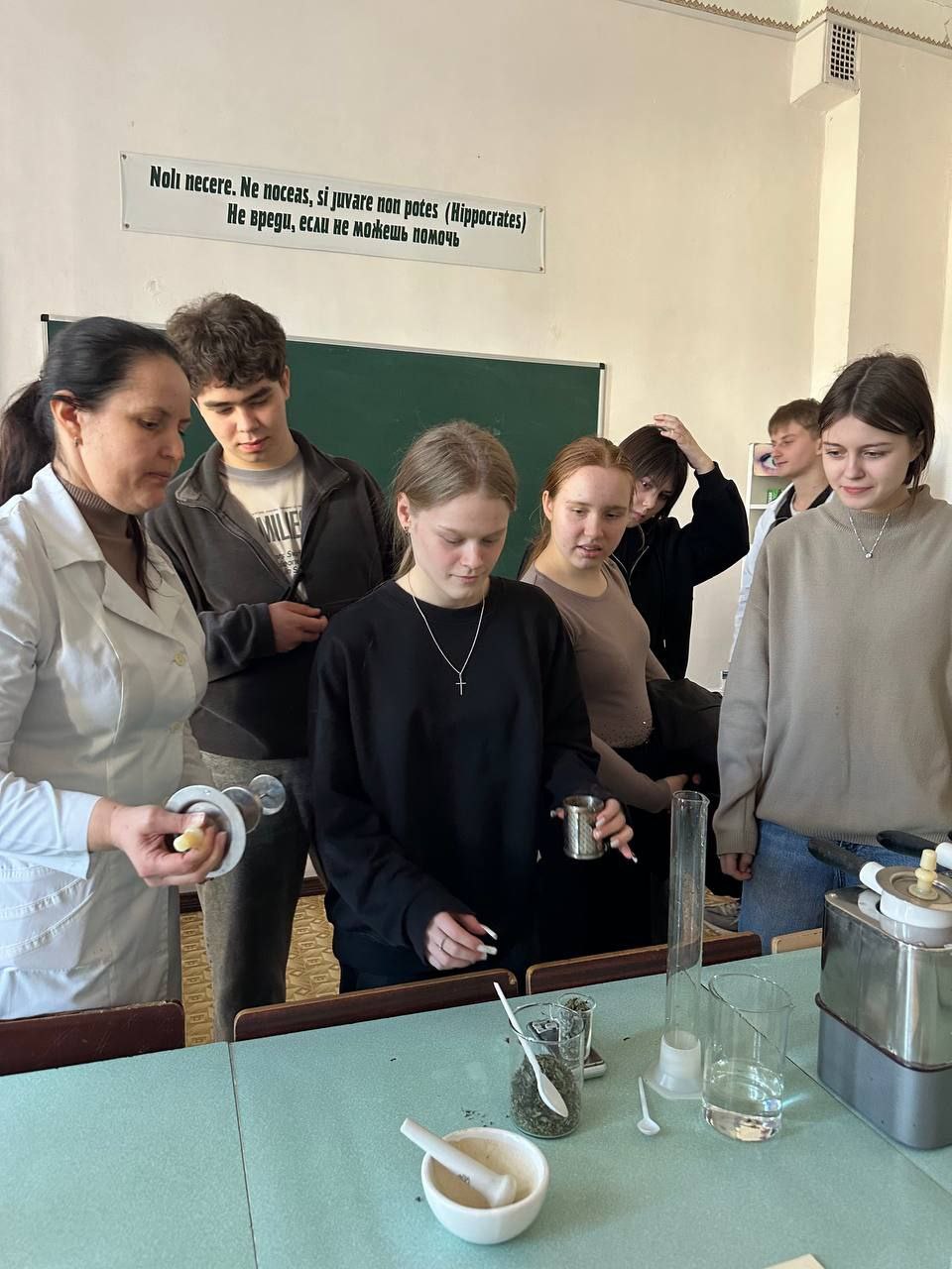 Кроме того, обучающимся были представлены элементы фармацевтического анализа лекарственных веществ, а именно была проведена демонстрация
